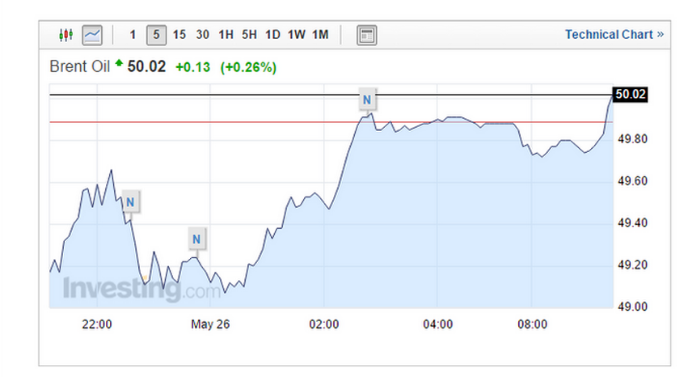 美国原油库存降幅大超预期,布伦特原油价格自去年11月来首次升破每桶50美元。
