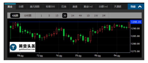 现货黄金周一亚市开于1298.21美元,随即录得当日最高1298.21美元,之后震荡下跌。欧市延续跌势,录得日内低点1277.34美元触底反弹。美市震荡上行,多头不断拉升,跌势缓解,终收于1289.40美元/盎司,跌幅0.65%。