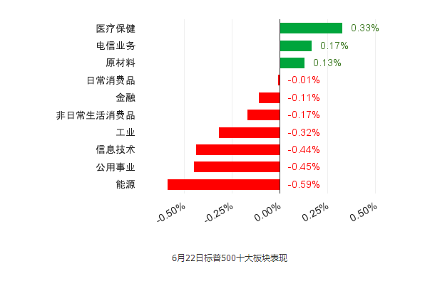 标普500指数10大板块中,3涨7跌,医疗保健领涨,能源板块领跌。213支股票上涨,284支股票下跌,7支收平,成分股方面,NFX领涨,ADBE领跌。