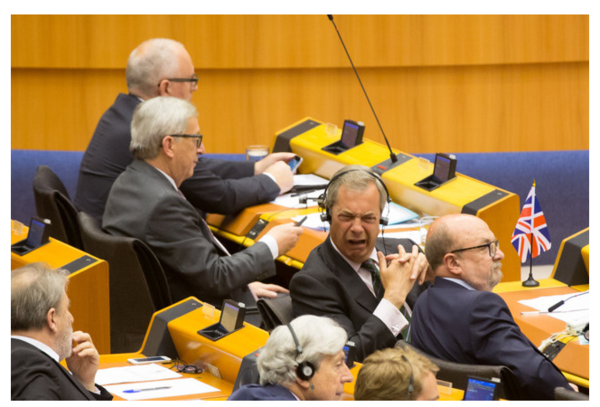 据外媒,在周二欧洲议会紧急会议上,欧盟委员会主席容克怒斥英国脱欧派领导人前内务部长法拉奇:“你到底为什么还会坐在这儿?!”