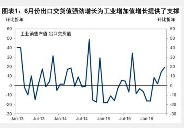 财政政策起到了支撑作用,财政支出同比增长20.3%。货币状况也相对宽松。政策环境宽松推动基建投资增速加快,使之成为6月份固定资产投资项下唯一一个增速加快的分项。工业品出口增速反弹可能受到了有效汇率走弱的支撑,这是实体经济增速的另一项贡献因素。 6月工业品销售出口交货值季调后环比折年增速从5月的14.8%升至19.3%。汽车销售是6月份零售额数据走强的一项主要贡献因素。