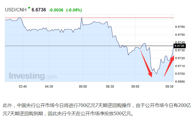 本周初,人民币兑美元中间价下调156点至6.6961,创下2010年10月以来新低。当日,在岸人民币兑美元跌破6.7关口,为2010年11月以来首次。不过此后几日,人民币出现反弹。