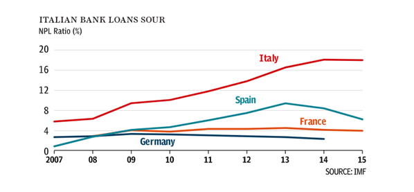 此前华尔街见闻曾报道,意大利持有的不良资产规模约为3600亿欧元,占欧元区银行业不良资产总额的约三分之一。该国的不良资产率已经高达17%。目前,意大利银行业有2000亿欧元的贷款无法收回,其中850亿欧元尚未减记。