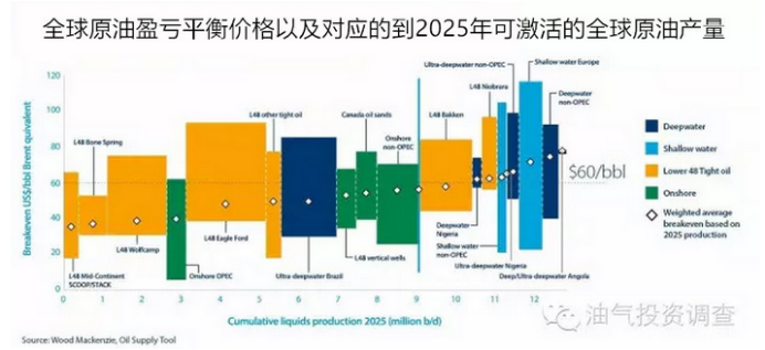 导读: 本文从一张关于全球原油盈亏平衡价格以及对应的到2025年可激活的全球原油产量图分析出,如果油价不能够在2017年回升且稳定在70美元/桶以上,那么油市将面临前所未有的灾难。