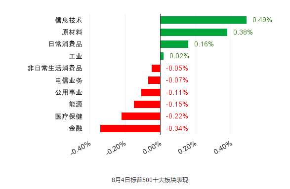 周四(8月4日)美股基本持平。英国央行宣布降息并扩大QE规模,但决议对美股影响甚微。周四美股财报喜忧参半,未能给市场提供明确指引。市场聚焦将在周五公布的非农就业数据,该数据将给美联储的政策决定提供重要参考。