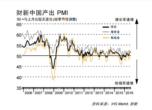 中国8月财新服务业PMI小幅回升至52.1,前值51.7,仍低于长期平均值。8月财新综合PMI微幅跌至51.8,仅略低于7月创下的22个月最高纪录(51.9)。