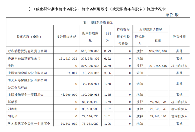 2016年9月14日阳光产险通过上海证券交易所集中交易系统增持伊利股份无限售条件流通股5,667,900股,占伊利股份总股本的0.09%。本次权益变动后,信息披露义务人合计持有伊利股份普通股股票303,240,065股,占伊利股份总股本的5.00%。