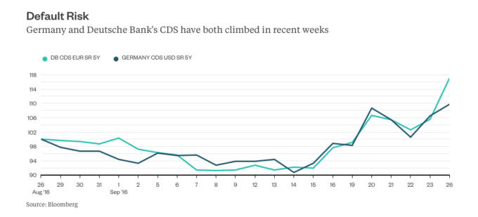 从德国国债和德银债券的CDS走势上来看,二者的相关性极高。这也验证了德银前高管关于市场对德银性质的“误解”。