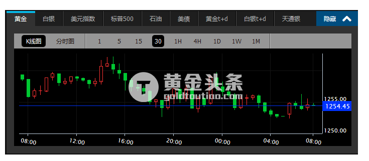 黄金周二亚市开于1259.54美元后盘整,一度短暂上涨,录得日内高点1262.16美元再转跌。欧市延续小幅下跌走势。美市金价震荡加大,继续小幅下挫,录得日内低点1251.70美元/盎司后跌势未止,终收于1252.75美元/盎司的低位,下跌0.51%。