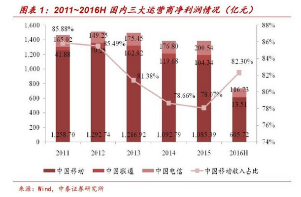 从整个电信行业来看,程娇翼称,中国移动的净利润占比长期维持在高位,独吞80%电信运营市场利润。一家独大的趋势愈演愈烈,电信运营市场的失衡不断加剧。