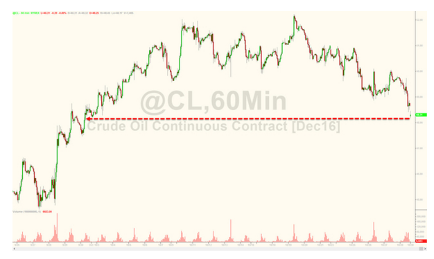 上述消息导致市场对供应受限的预期受到打击。周一,WTI原油期货延续上周五的下跌态势,一度跌至45.24美元/桶,创下一个月以来最低水平。