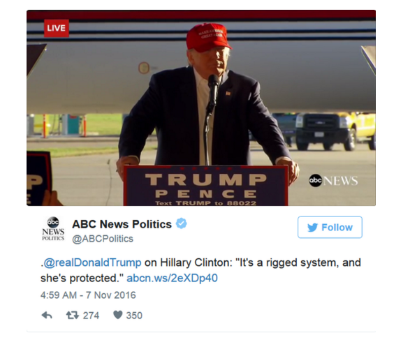 紧接着,特朗普高呼:“这是一个被操控的系统,希拉里受到了庇护!”,伴随着他连连摇头,失望之情溢于言表。