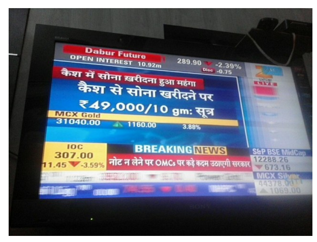 由于9日银行意外停业一天,所有ATM提款机关闭,除了连夜去ATM机前提取100卢比面额纸钞,以及去加油站和医院把大额纸钞花掉之外,很多人涌入金店,某些珠宝店在午夜之后依然营业。金价随之飙涨,短短10多个小时间,印度黄金零售价暴涨15%—20%,有些地方高达2294美元/盎司。
