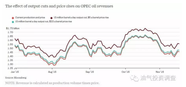 最近油气君被问到最多的一个问题就是如果OPEC减产细则出台,油价到底能够涨到多少美金?考虑到很多投资者都认为减产的目的是产油国能够在减产后通过抬升油价而获得更加充裕的财政收入,油气君需要特别说明的是,如果油价只是涨个2-3美金左右,那么整个减产协议几乎就算是彻底失败了,为啥?见下图。