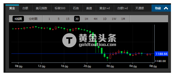 国际现货黄金周三(11月23日)破位下滑,美盘大跳水30美元,收于1190美元下方,创九个月新低。FOMC纪要基本基本确定12月加息,美元创14年新高,道指、标普500股指指连续第三天刷新历史新高,金价创两周来最大单日跌幅。