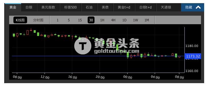 黄金周三亚市早盘开于1188.40美元/盎司后震荡上行,录得日内高点1194.95美元/盎司后转跌。美市在强劲数据打压下,金价快速下滑,不断刷新前低,多头溃败,录得日内低点1170.35美元/盎司后小幅反弹,再转底部盘整,终收于1173.15美元/盎司,跌幅为1.3%。